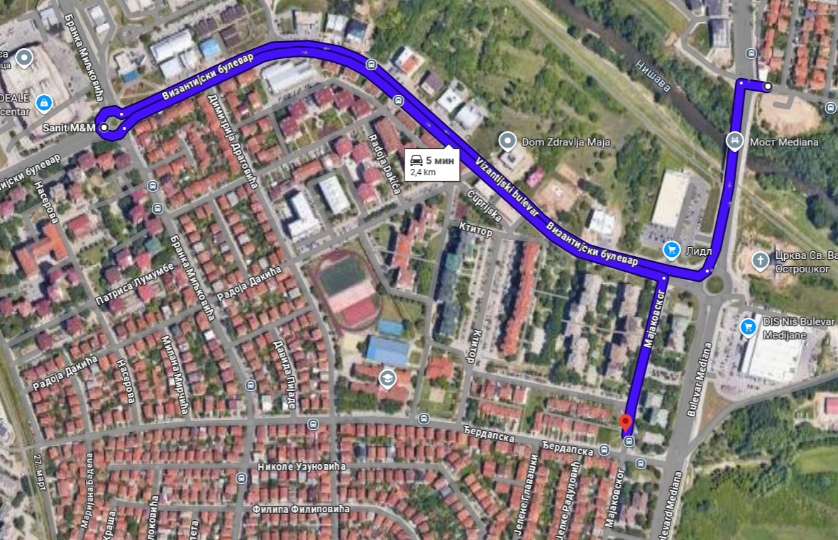 У складу са наведеним привремено се мења траса линије број 6 Железничка станица – Дуваниште – Скопска на поласцима из Скопске улице ка Железничкој станици, тако да од раскрснице улица Булевар Медијана – Византијски булевар, возила јавног превоза саобраћају Византијским булеваром до кружне раскрснице са улицом Бранка Миљковића затим Византијским булеваром у контра смеру до раскрснице са улицом Мајаковског и надаље редовном трасом ка окретници „Дуваниште“ и Железничкој станици. Привремена измена режима важи за дан 8.3.2026. године у периоду од 7:00 до 14:00 часова.