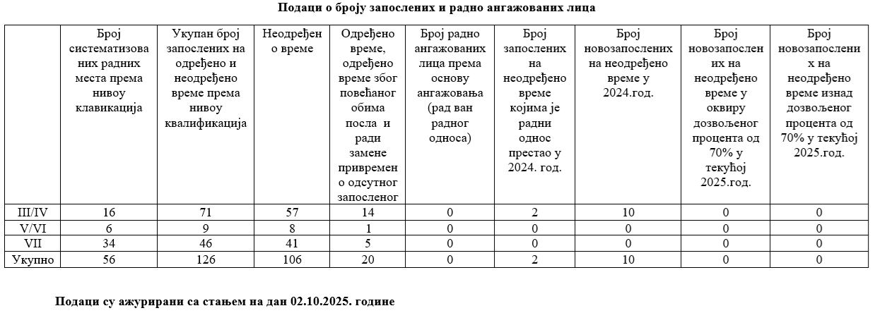 Подаци о броју запослених и радно ангажованих лица: